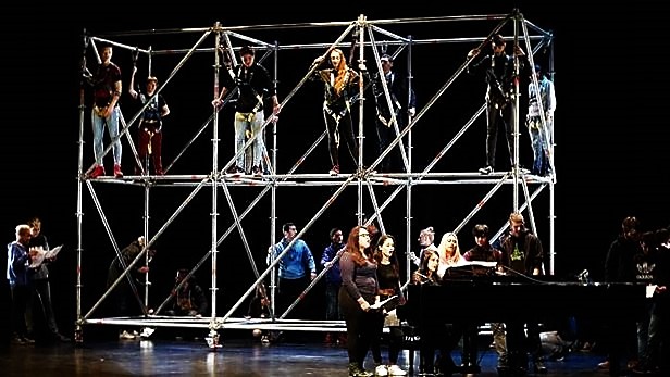 En cuanto al espectáculo que ayer presentaron, Berraondo apuntó que “otros años hemos hecho espectáculos más multidisciplinares, pero este año yo tenía la ilusión de montar un musical, y uno de mis preferidos es Rent. Una obra que, en su origen, habla de personas que tienen problemas con la especulación inmobiliaria y también con el sida, porque cuando se escribió, en Estados Unidos era un tema muy candente. Pero aquí, como ha entrado en el proyecto Riesgos Laborales, hemos adaptado la historia a que en lugar de suceder en unos pisos de okupas, aquí son compañeros de trabajo en un obra. Y tienen problemas porque uno está enganchado a la droga, otro es transexual y se enrolla con un gay, y está mal visto en la cuadrilla… Hemos intentado coger el argumento original y adaptarlo al momento actual”.