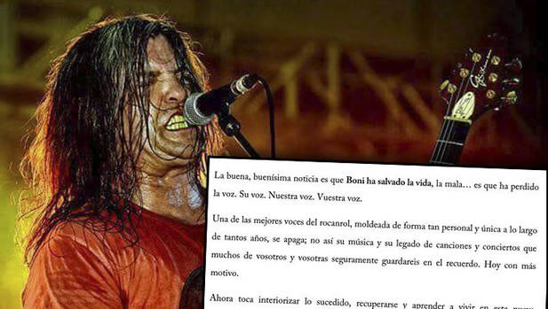 Boni, el mítico exguitarrista y cantante de Barricada, ha emitido este lunes un comunicado a través de su perfil de Facebook en el que ha puesto al día a sus seguidores de su estado de salud. El artista navarro desvelaba hace unas semanas que padecía cáncer de laringe, motivo por el cual tuvo que cancelar todos los conciertos que tenía previstos en su gira.