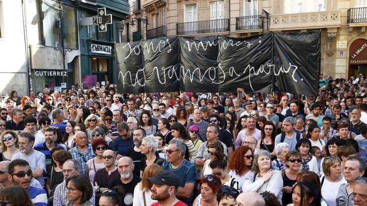 Fotografía de la concentración en Plaza del Ayuntamiento de Pamplona contra la decisión de los jueces de dejar en libertad bajo fianza a los miembros de «la manada» / Noticias de Navarra